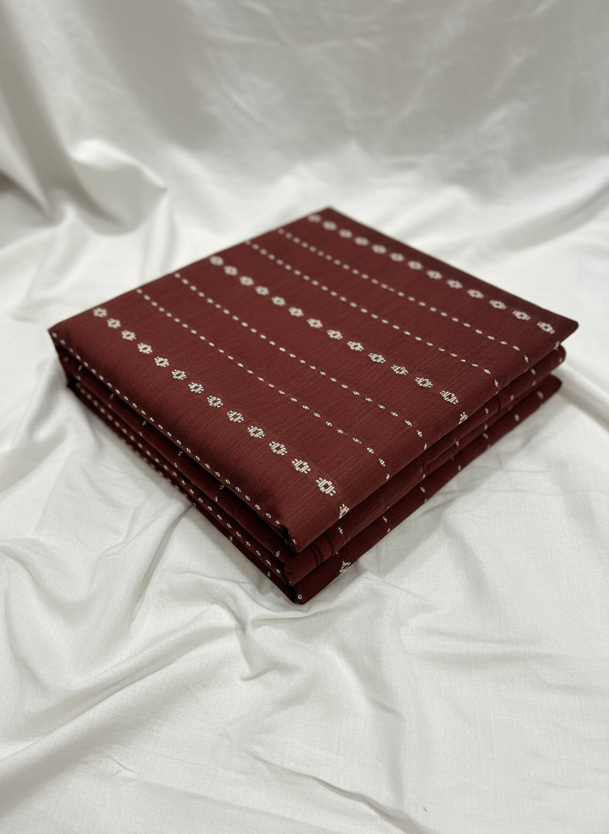 Raw Silk Dress Material – Brown with Woven Motifs (Top 2.5m Only)